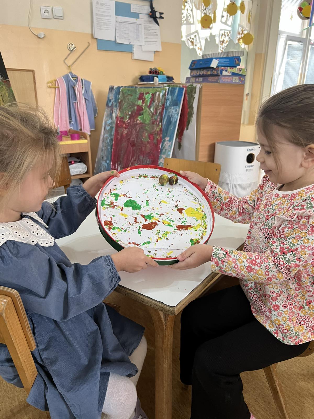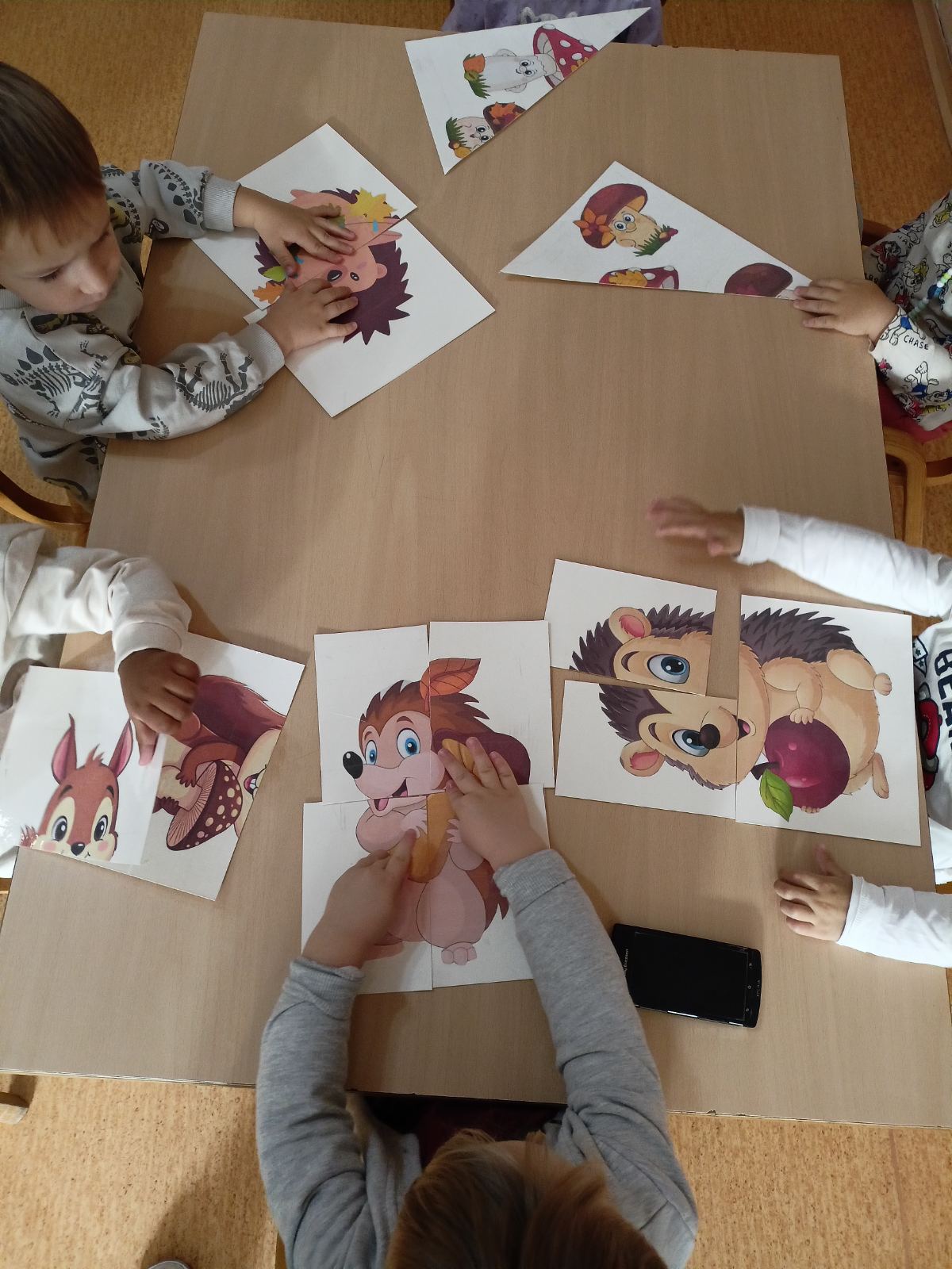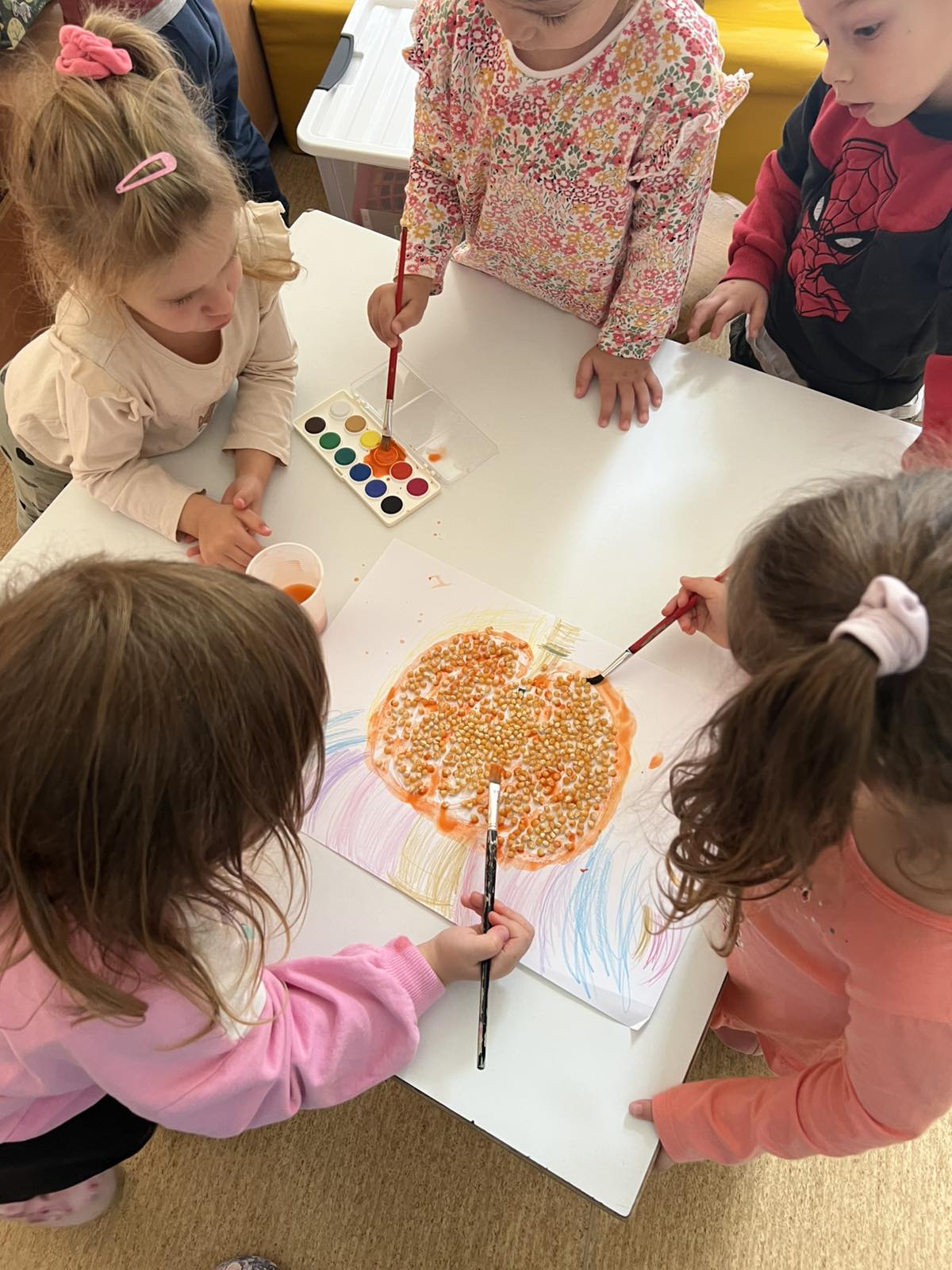Средња група је наставила истрживање кроз свој пројекат „Кад се руке удруже, шта се може“. Током једне активности су схватили да ако помешају две боје, може да настане нека нова боја.. Удружили су своје рукице и заједничким снагама су настали дивни јесењи мотиви. У дворишту вртића су пронашли јесење плодове. Разговарали су о њиховом изгледу и о томе како се користе, чему служе... Након тога су осмислили ликовну радионицу у паровима. Старија група је наставила истраживање заната кроз свој пројекат „Стари занати“. Деца су инспирисана причом „Сат који је изгубио време“, цртала свој сат из маште, а потом су од