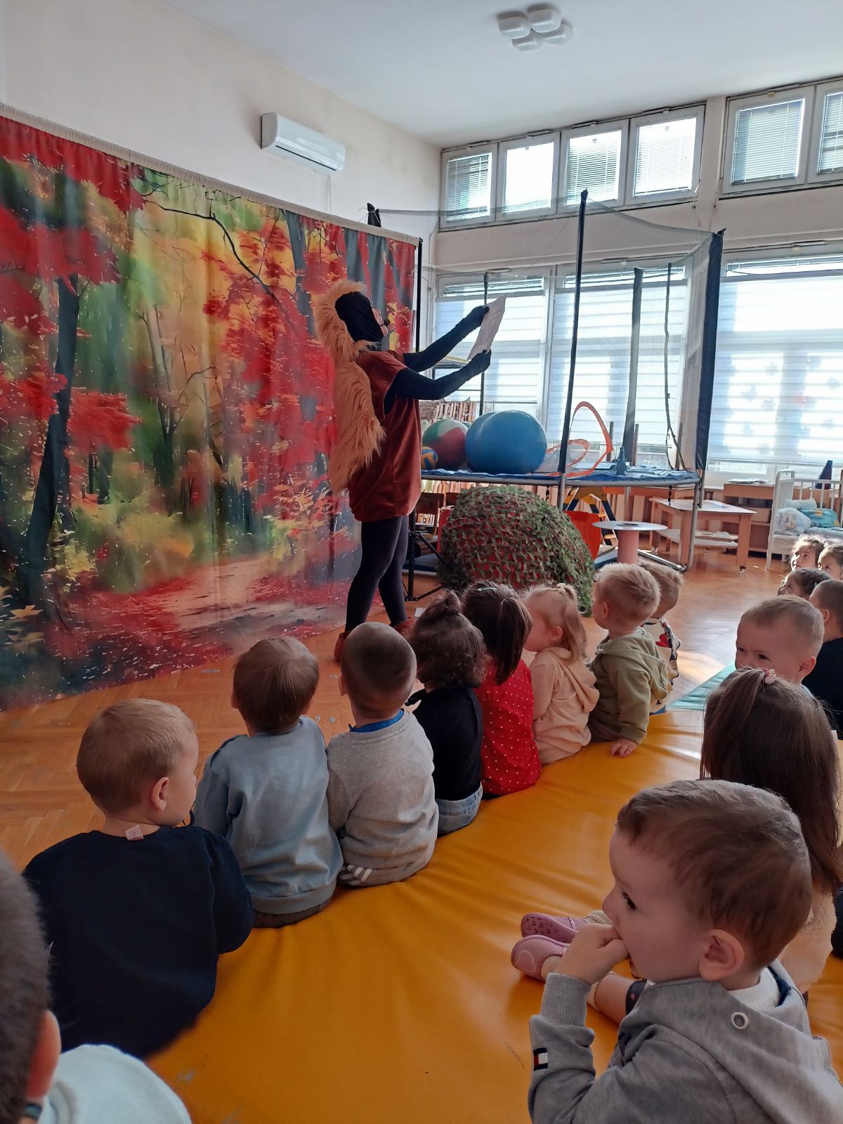 Јасленци су у Октобру радили на пројекту „Јеж“. Деца су се кроз сликовнице упознала како изгледа јежева кућица. Слагали су слагалице из неколико делова. Скупљали су јежиће по дворишту вртића, а затим то лишће користили за украшавање јежића. Гледали су и представу „Јежева кућица“, која се фантастично уклопила у пројекат. Деца су била врло узбуђена и одушевљена.
