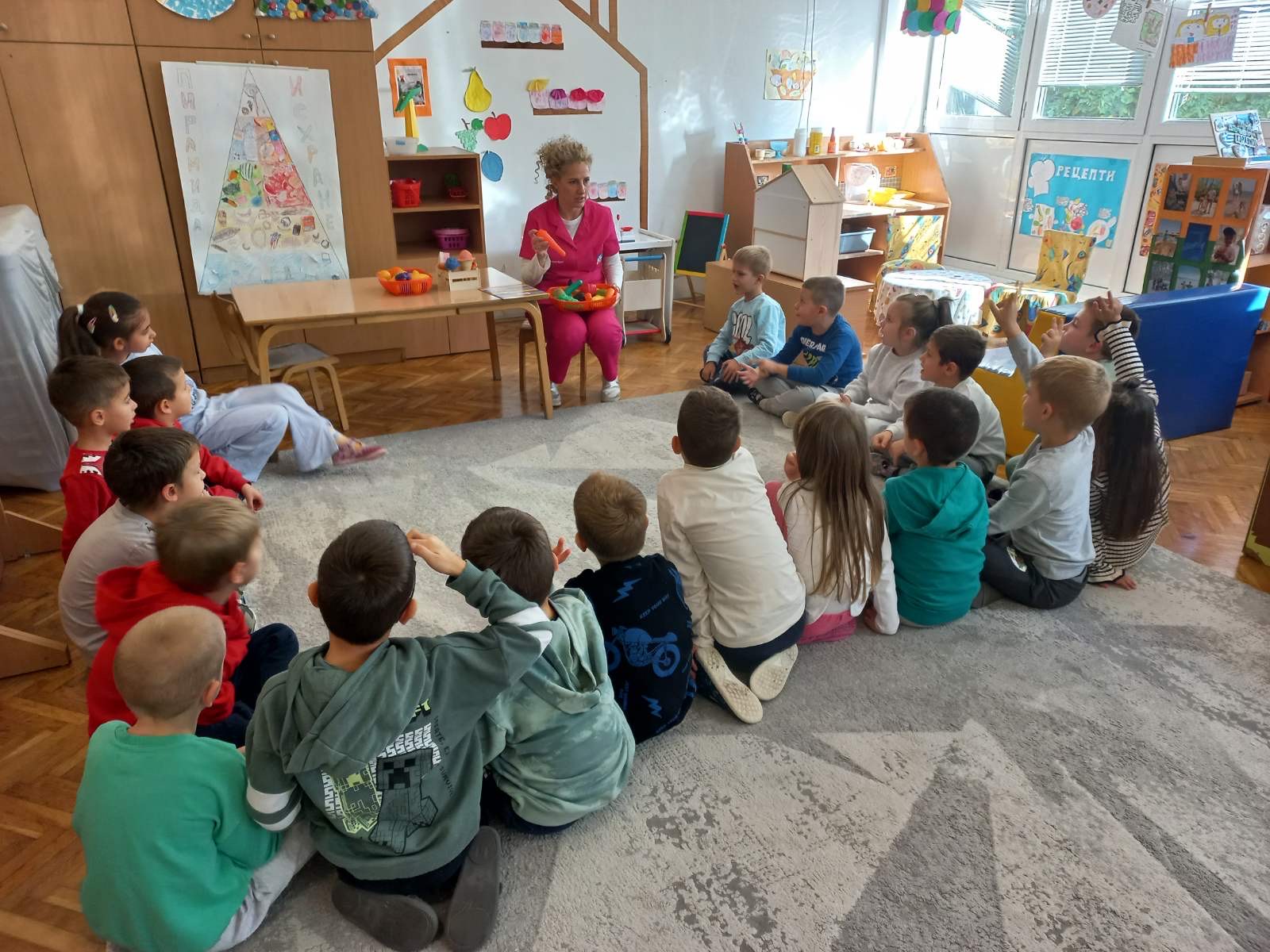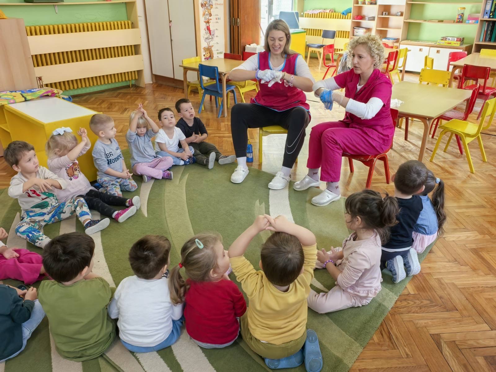 У вртићу смо обележили 15.октобар Светски дан чистих руку. Са млађом групом је одржана радионица: зашто је сапун битан и како се правилно перу руке. Октобар је месец правилне исхране и 16.октобра обележили смо Светски дан хране. Сестра на превентиви Горана Матић Петровић је са предшколском групом одржала радионицу шта је здраво, а шта нездраво. Деца су правила Здравка и Нездравка.