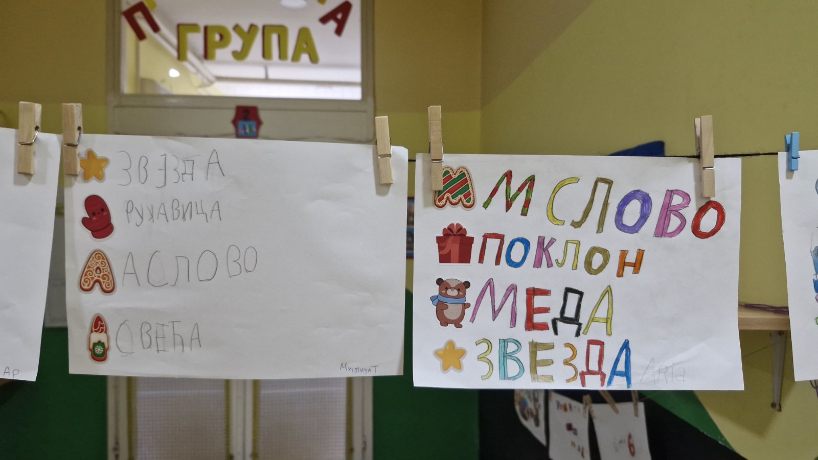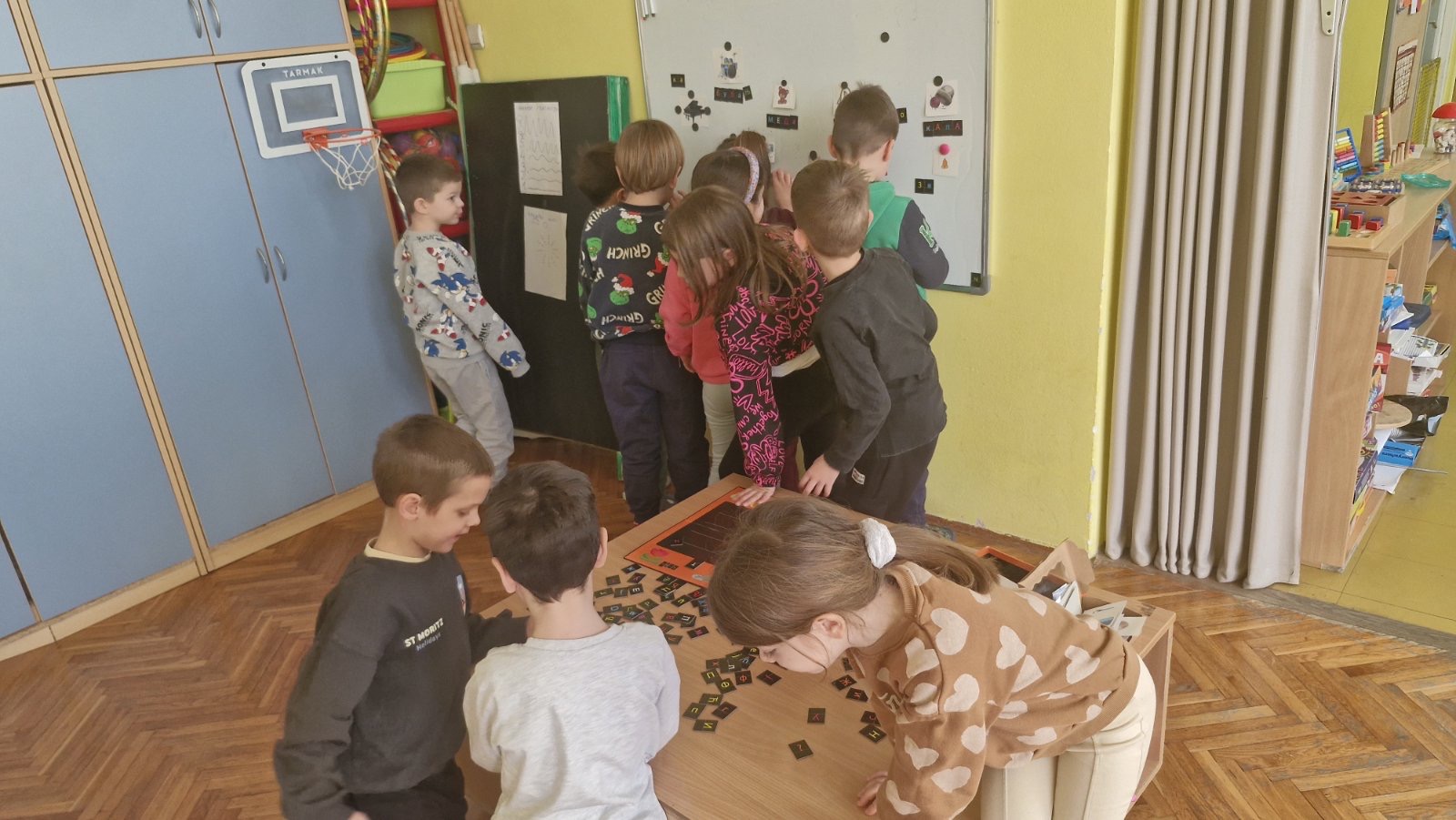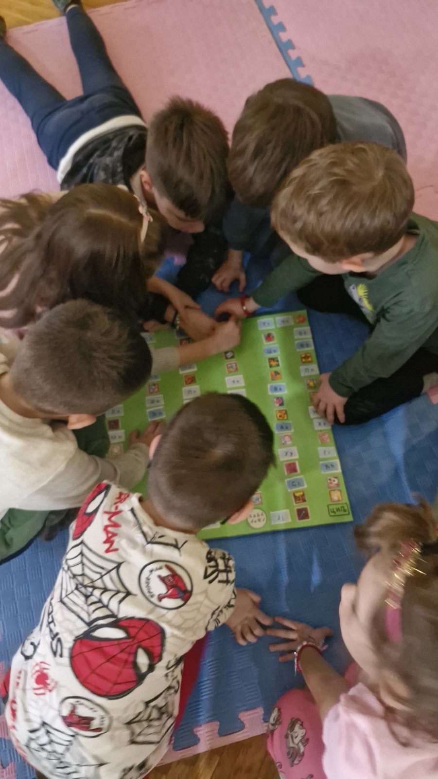 Кроз игру „Наш буквар“ и различите језичке активности, деца су слагала речи од понуђених слова, препознавала почетно слово свог имена, додавала слова како би добила нове речи и у пару извлачила слике на основу којих су састављала речи. Посебну радост донеле су активности у којима су слова стварали на креативан начин – слово А у малим групама, слово И обликовањем тела, као и задаци „пиши-бриши“ и спајање тачкица како би добили тражено слово.