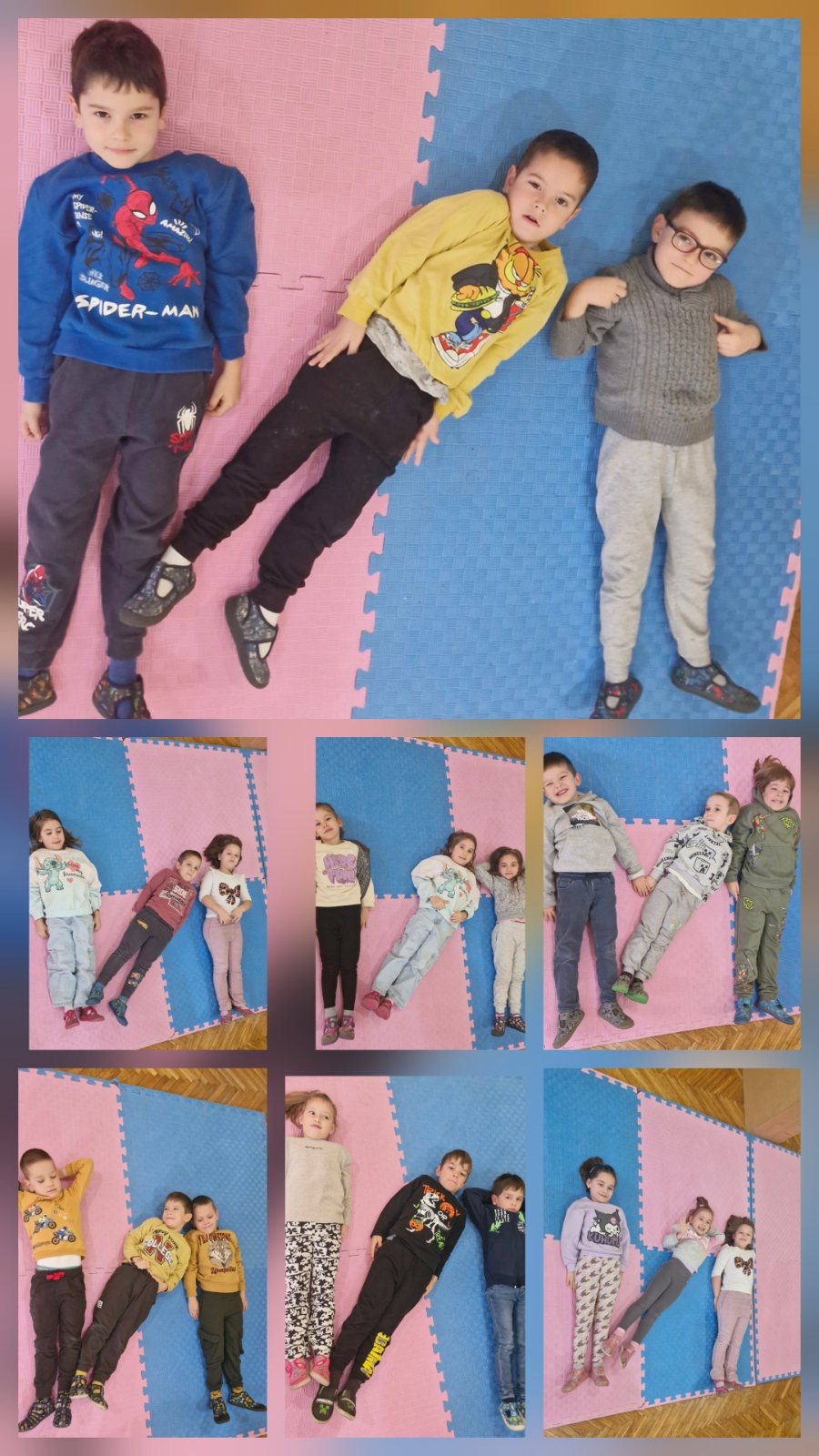 У оквиру свакодневних активности, деца предшколске групе су кроз игру и покрет упознавала слово Е. Кроз различите занимљиве задатке, као што су препознавање слова додиром, проналажење слова у простору и игра асоцијација, деца су на креативан начин усвајала нова знања. Посебно интересовање изазвала је активност у којој су у окружењу проналазили предмете који подсећају на слова азбуке – обруч као слово О, отворене маказе као Х, ваљак као Г, штафелај као Д, кишобран као Ј, дршка од шоље као И, рајф као С, чешаљ као Е и број 3 као слово З.