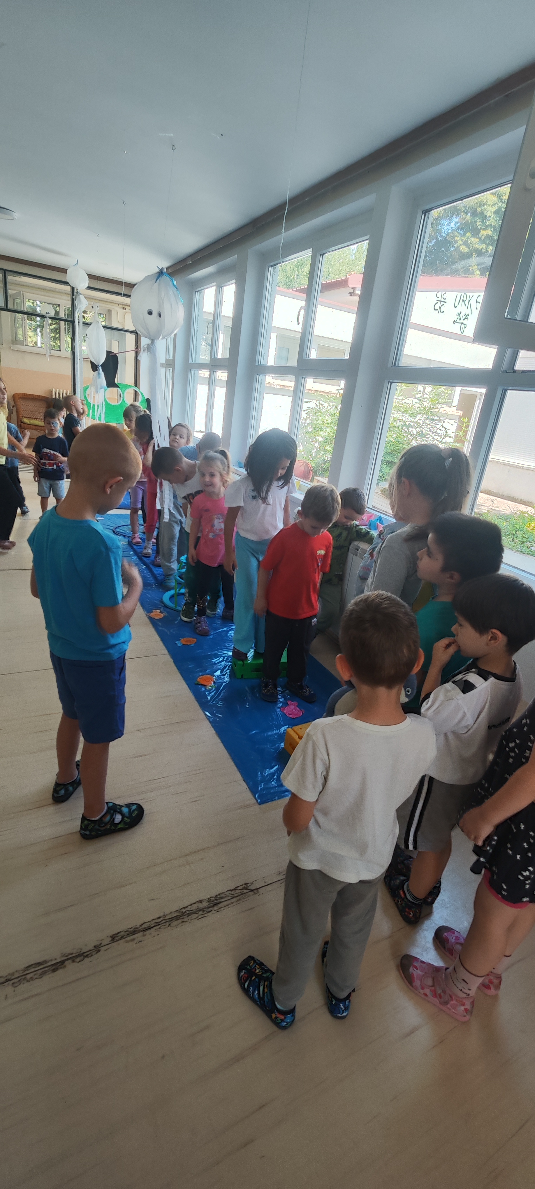 За најхрабрије морепловце, направили смо полигон кроз „морске дубине“, где су деца могла да балансирају, прескачу препреке и развијају моторику-уз звуке таласа.