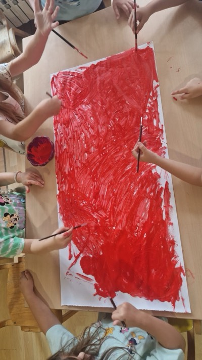 Деца су слушајући химну Републике Србије цртала заставу и на тај начин увеличала овај празник.