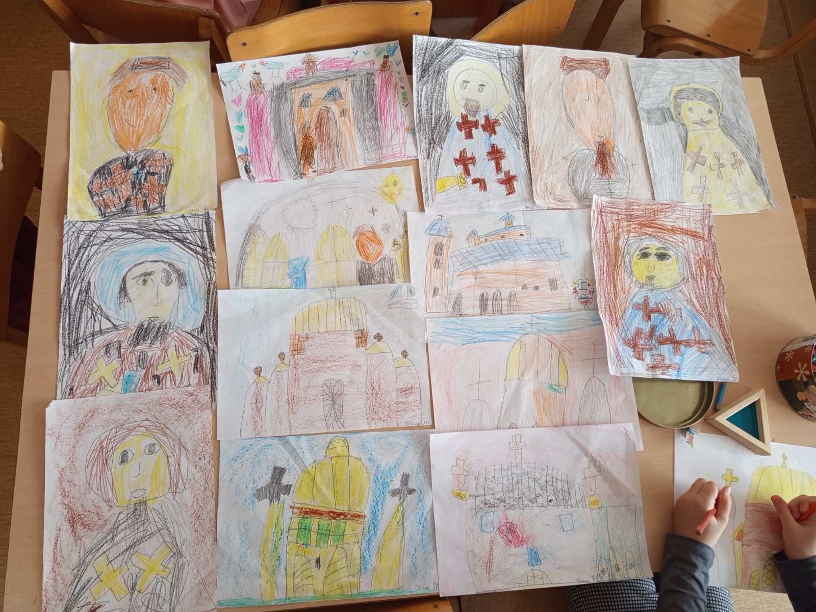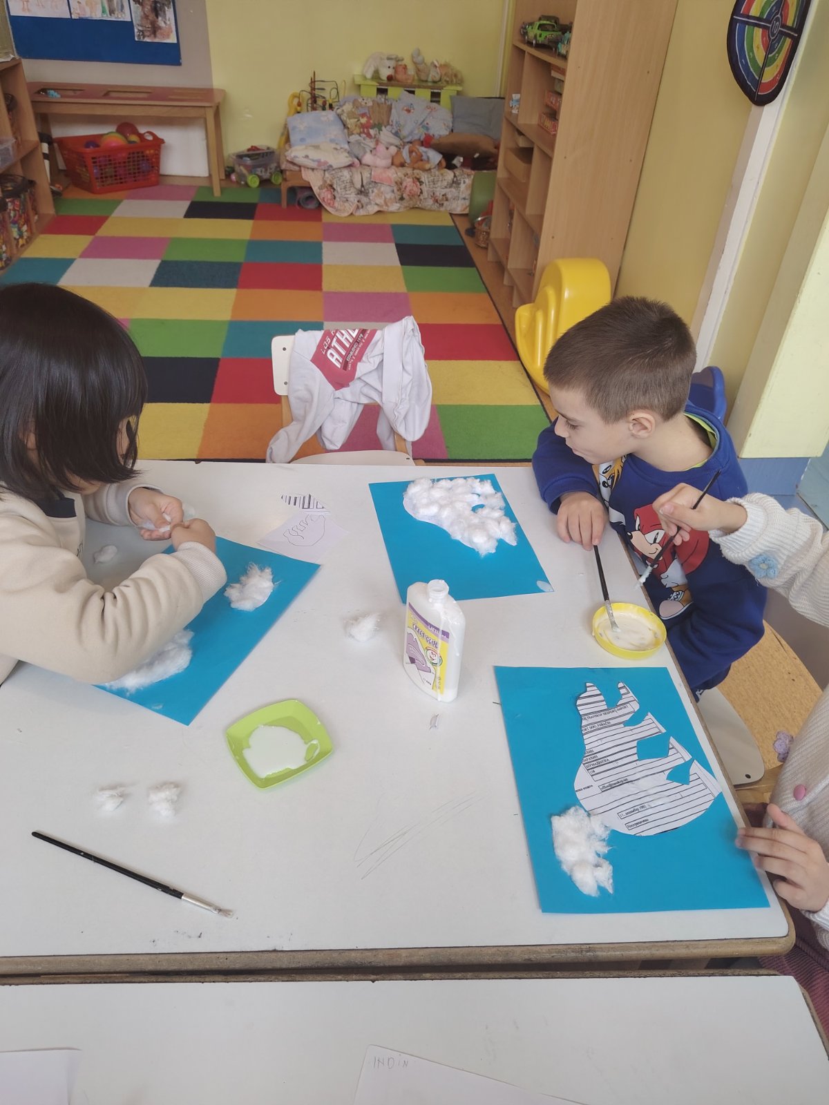 Предшколци су правили огрлице од сламчица, лутке од вунице и рециклажног материјала, везли су шал. Припремали се за прославу Светог Саве и дочекали госте у сали нашег вртића. У посети су били деца четвртог разреда Основне школе „Олга Петров“.