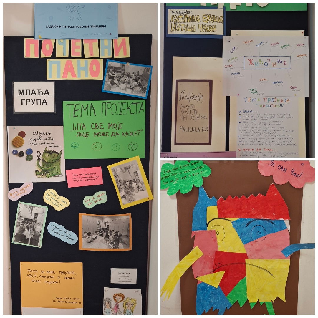 Током новембра месецa развијали смо пројекте у нашем вртићу, а паное, продукте рада и предивне инсталације изложили у ходницима нашег вртића. Старија група се потрудила да нам представи свој пројекат "Животињско царство“, у холу вртића, кроз дивне инсталације животиња направљених од природних материјала (гранчица) и вунице. Кроз пројекте, различите игре и активности успешно смо дочарали јесењу игру боја и лепоту.