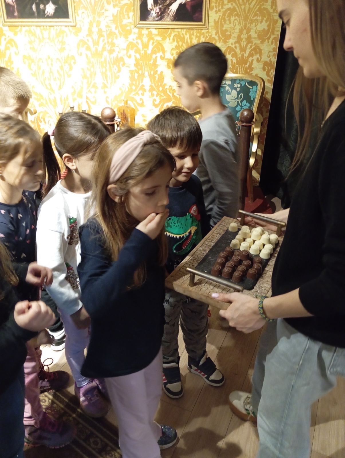 Дана 18.11. 2025. године предшколска група је посетила „Музеј чоколаде“, организованим превозом. У посету је ишло двадесетпеторо деце у пратњи два васпитача. По доласку у музеј деца су разгледала експонате који симболишу време и период настанка чоколаде. Слушали су занимљиве приче о древним народима, какао праху, састојцицма чоколаде и начину прављења. Дегустирали су више врста чоколаде. Затим су обукли посебне кецеље са амблемима музеја и прешли у радионицу. Тамо су правили своју чоколаду: тамну, млечну или белу уз додавање разних јестивих састојака. Свима је било забавно и занимљиво, посебно што су направљене чоколаде носили кући.