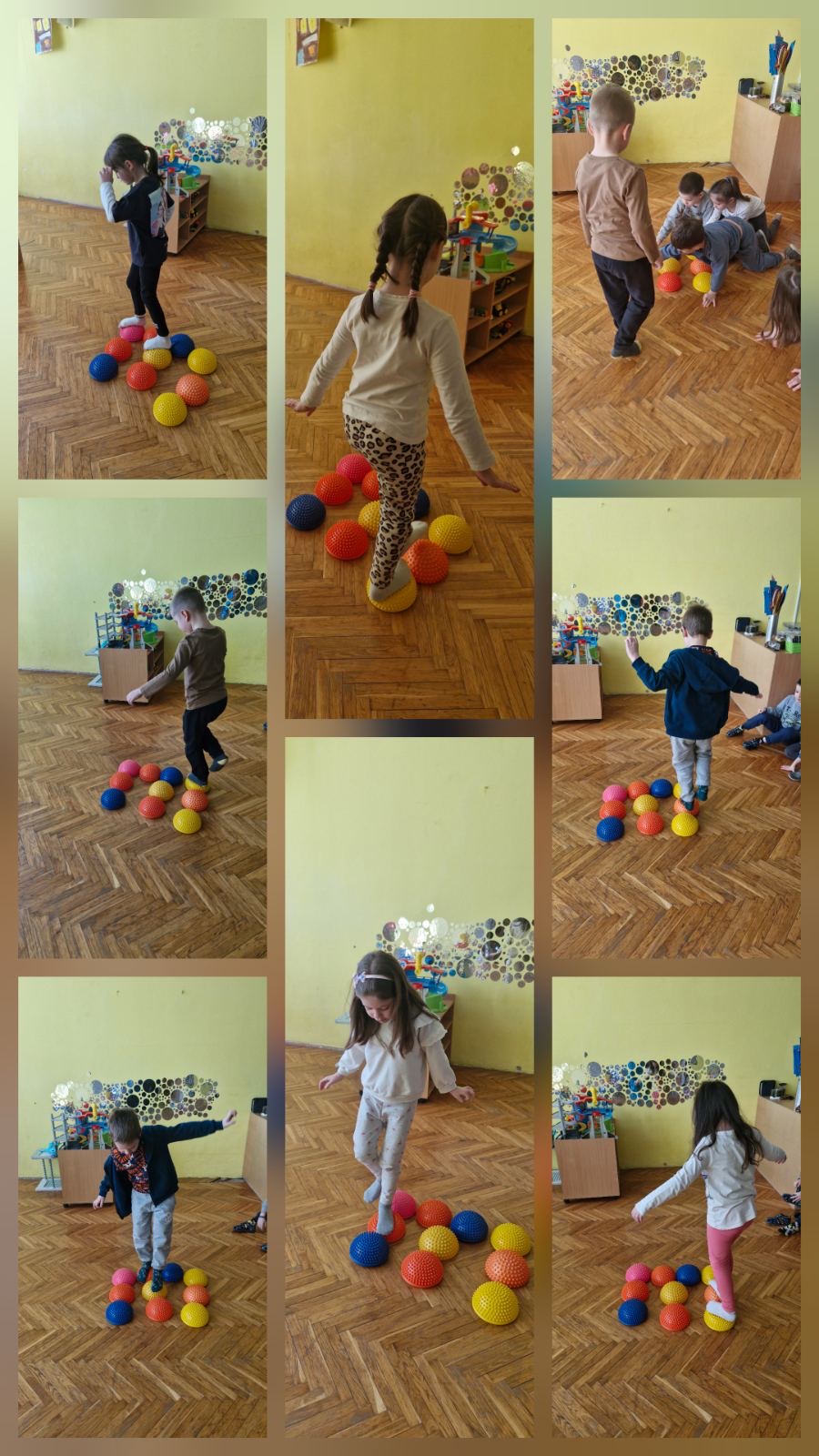 У оквиру свакодневних активности, деца предшколске групе су кроз игру и покрет упознавала слово Е. Кроз различите занимљиве задатке, као што су препознавање слова додиром, проналажење слова у простору и игра асоцијација, деца су на креативан начин усвајала нова знања. Посебно интересовање изазвала је активност у којој су у окружењу проналазили предмете који подсећају на слова азбуке – обруч као слово О, отворене маказе као Х, ваљак као Г, штафелај као Д, кишобран као Ј, дршка од шоље као И, рајф као С, чешаљ као Е и број 3 као слово З.
