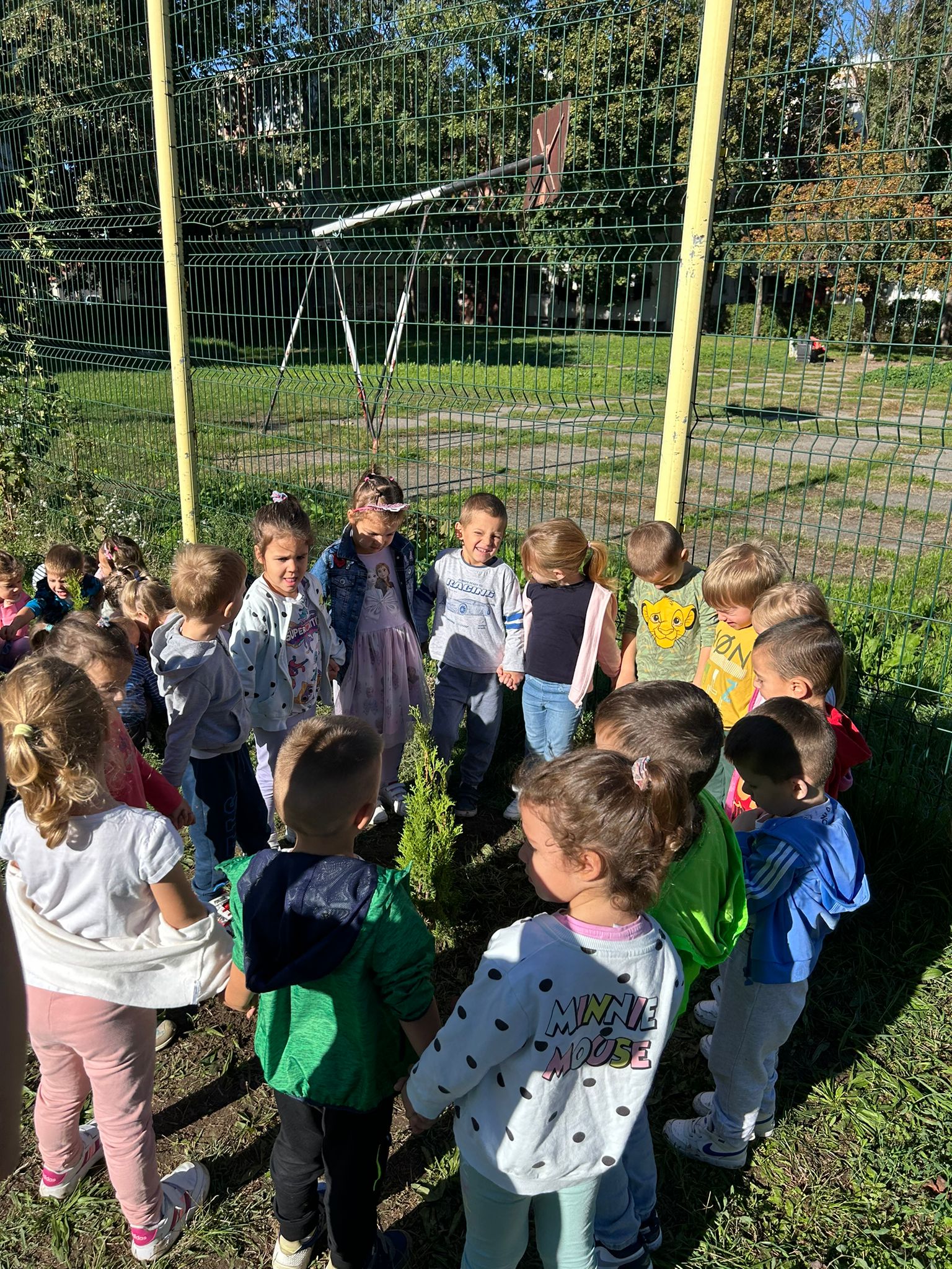 васпитачица. Засађено је десетак туја, које ће украшавати двориште вртића и за