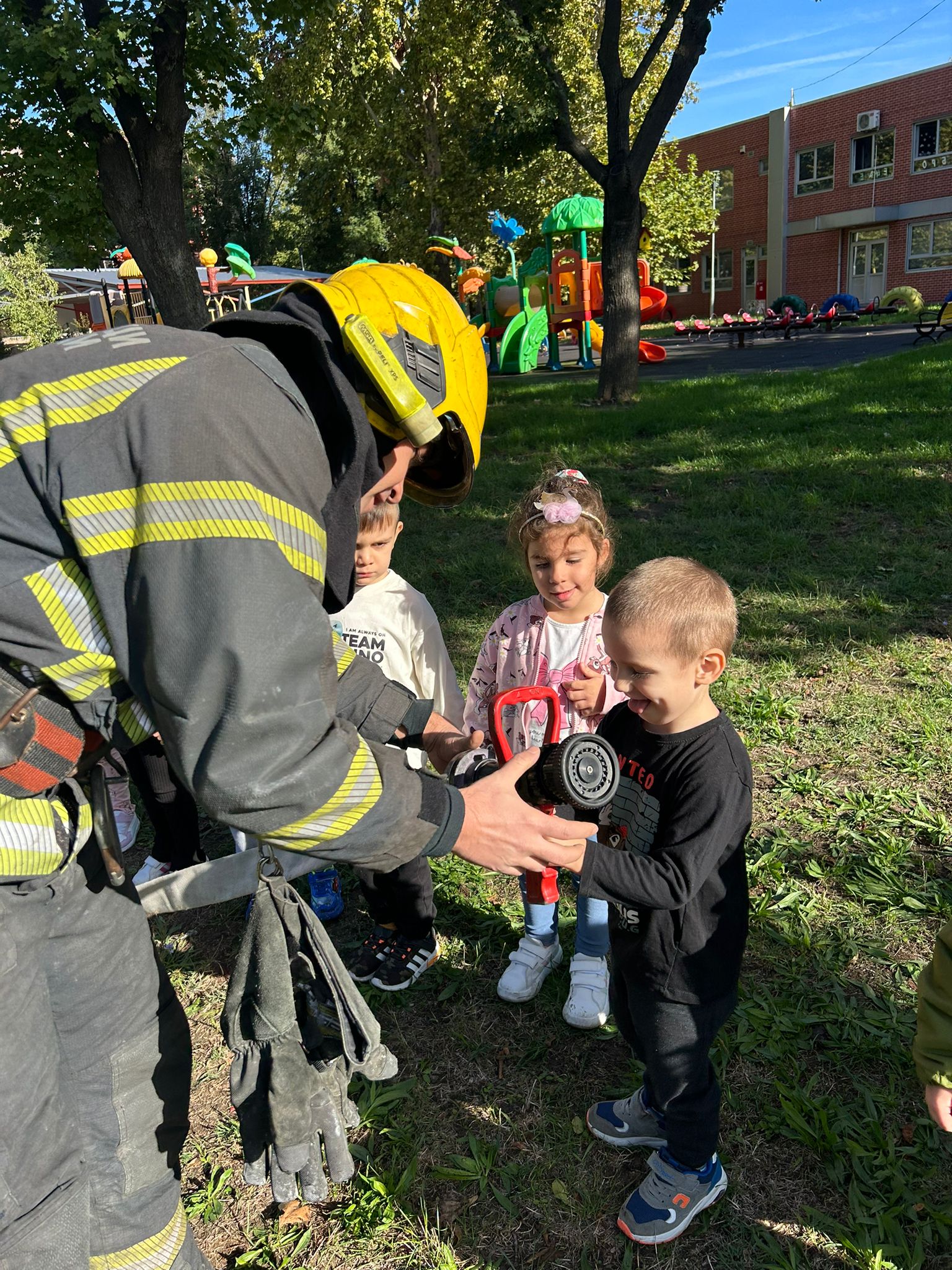 Другог дана, вртић су посетили чланови Ватрогасног друштва из Борче. Деца су имала
