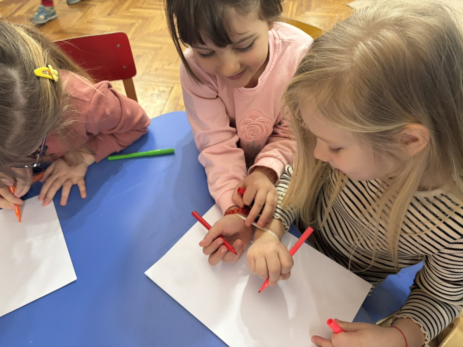 Активност се наставила и даље у пару, када су деца нежно везаних руку могла да цртају.