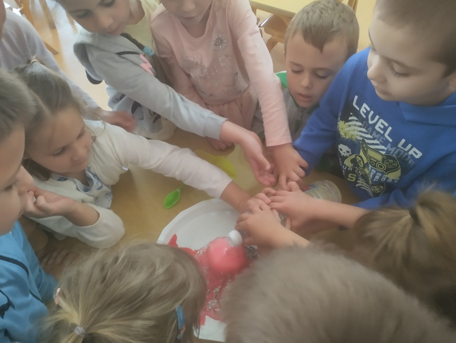 да учествују додавањем потребних састојака да „лава“ изађе из вулкана. Деца