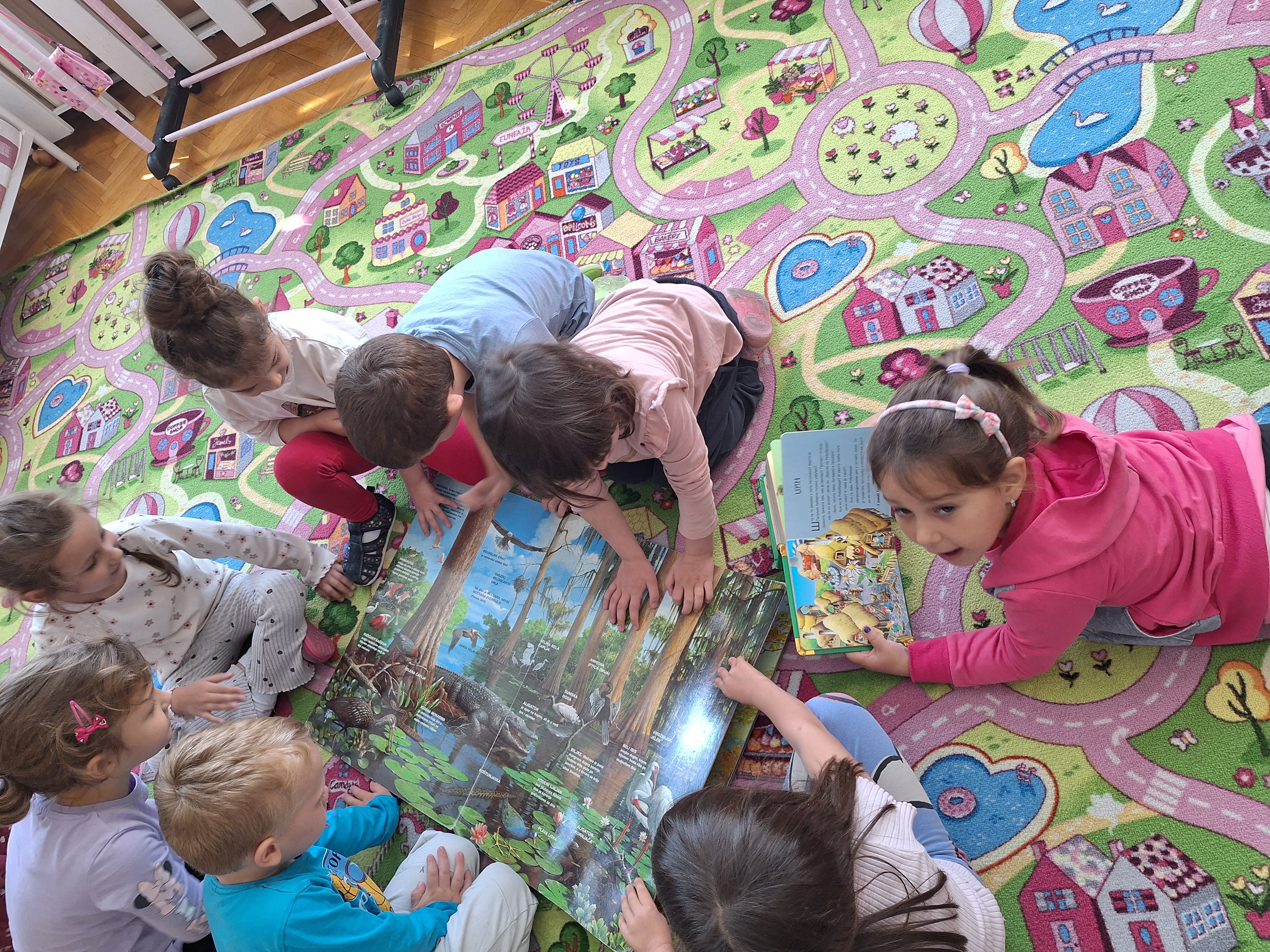 Током јуна месеца деца средње групе позвала су родитеље на заједничко дружење у оквиру пројекта „Тепих наш забаван је баш“, како би упловили у свет бајки и прича. Родитељи су имали задатак да заједно са својим дететом драматизују на различите начине омиљену бајку или причу. Простор собе су обогатили причама у сликама којима децу подстичу на развој говора. У току слободне игре деца су сама почела да интерпретирају омиљене бајке.