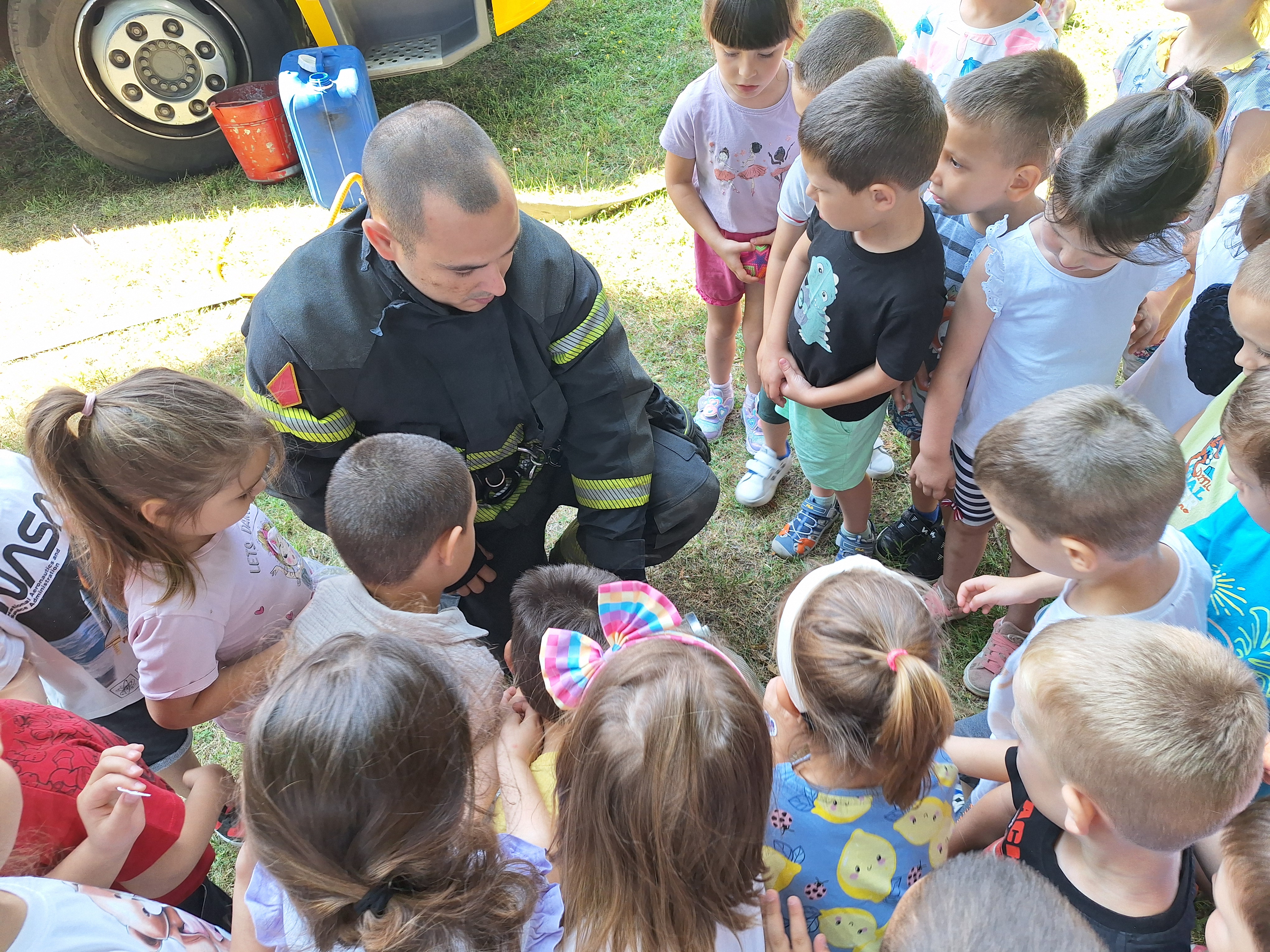 За крај су са свим другарима из вртића уживали у пена партију који су нам омогућили ватрогасци.