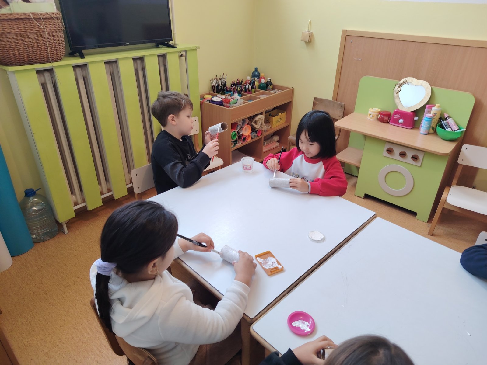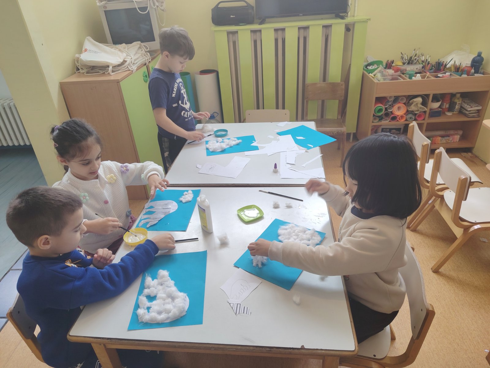 Предшколци су правили огрлице од сламчица, лутке од вунице и рециклажног материјала, везли су шал. Припремали се за прославу Светог Саве и дочекали госте у сали нашег вртића. У посети су били деца четвртог разреда Основне школе „Олга Петров“.