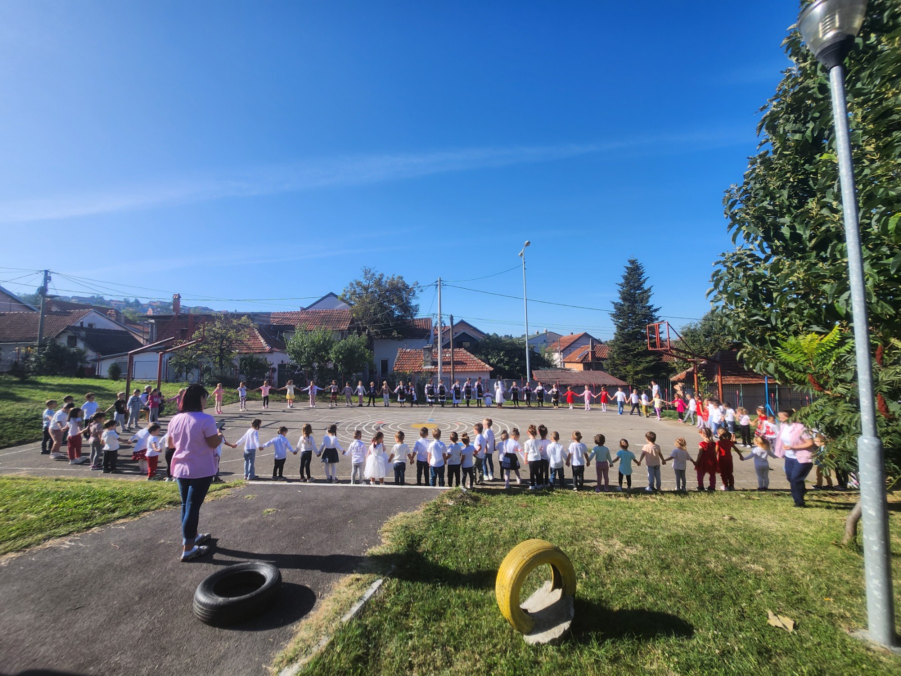 ,,Прело“ у дворишту вртића. Играло се коло уз звуке хармонике. Наша сестра, која је и