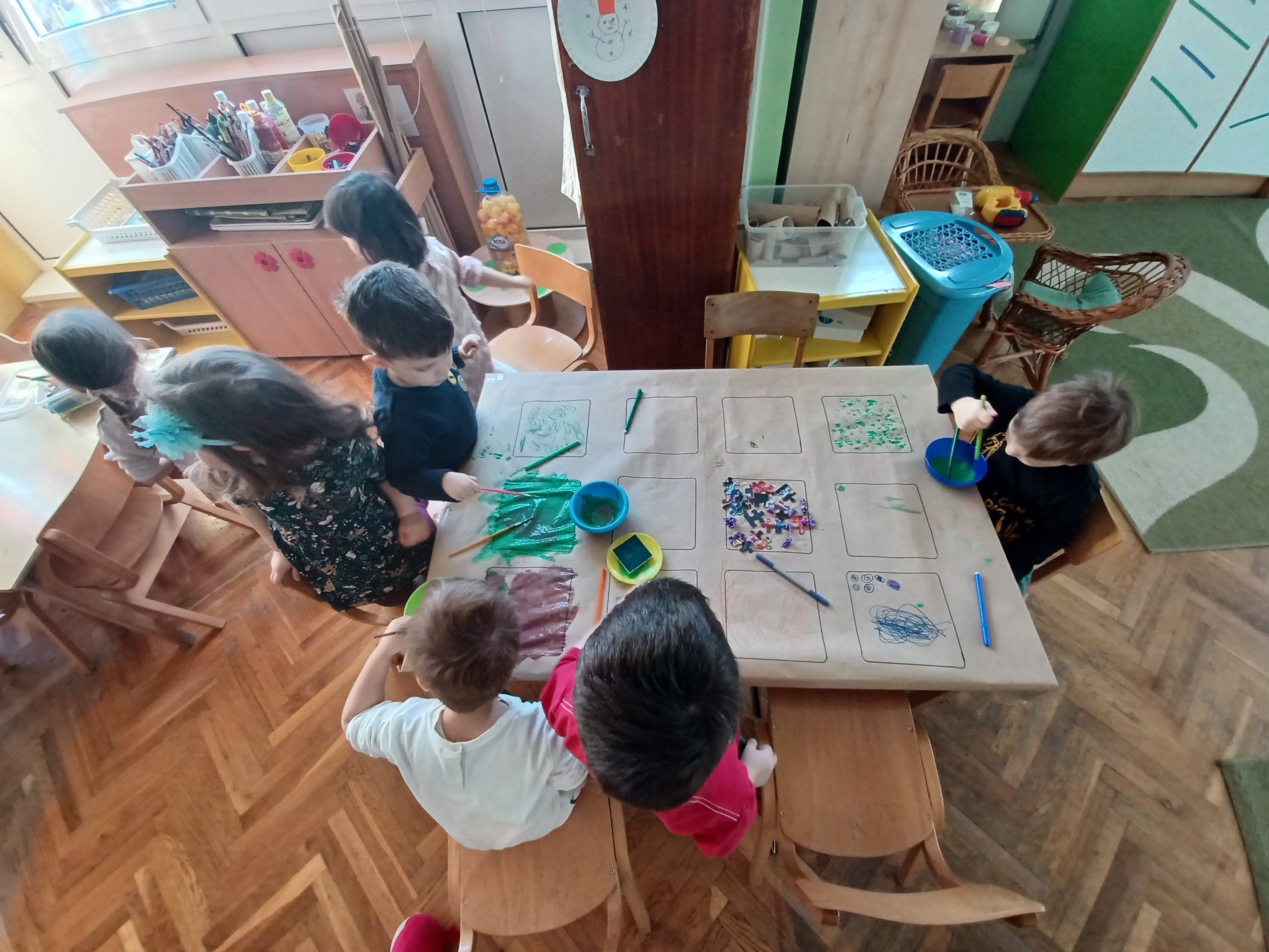 У оквиру пројекта "Шта све могу моје руке" деца млађе групе су утврђивања које све вештине су савладала. Опробали су се у бојењу, печатирању, сликању, отискивању прстићима, цепању, гужвању и лепљењу.