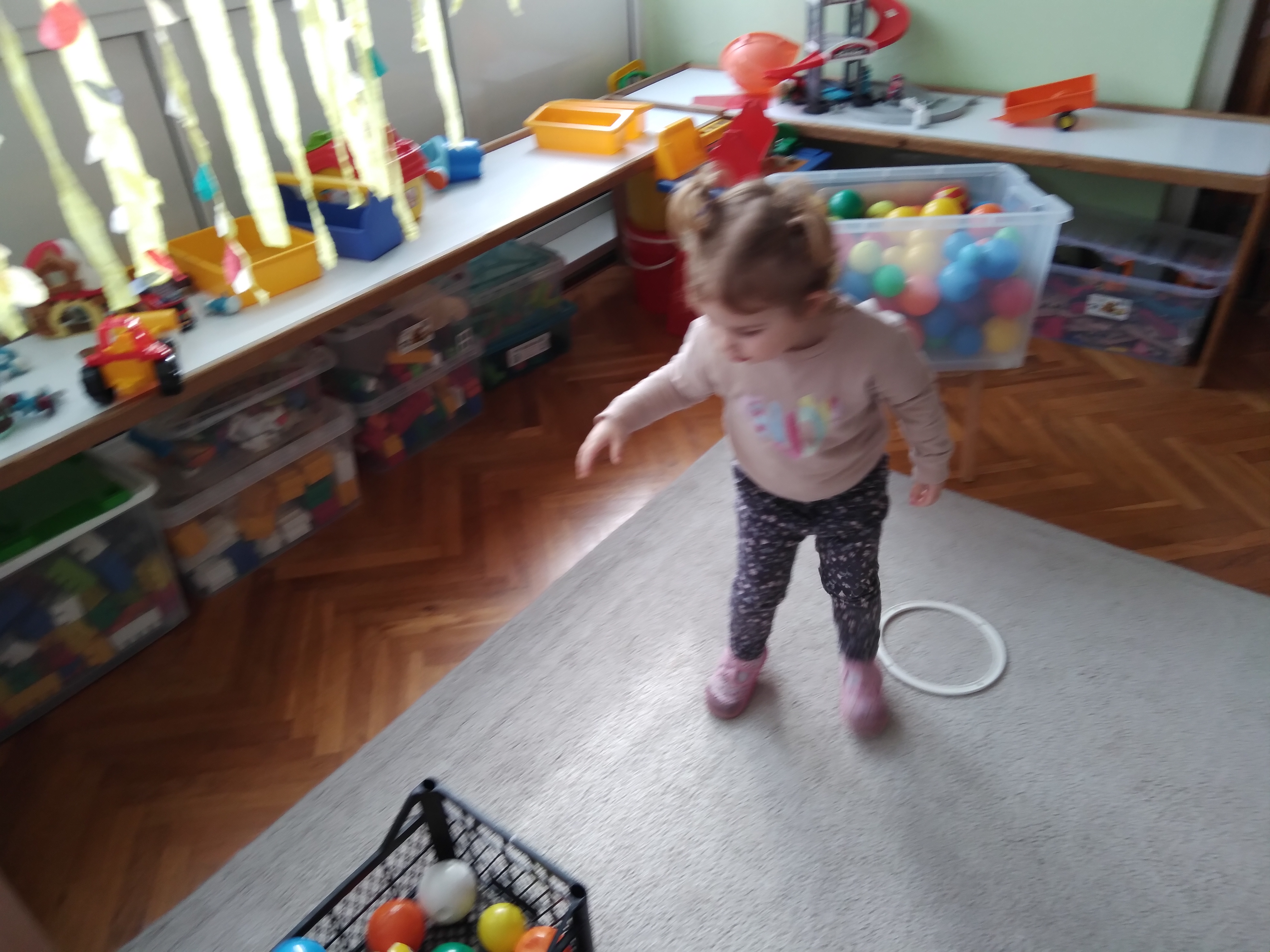 У оквиру пројекта "Спорт" у другој млађој групи организован је полигон са ускакањем, прескакањем, провлачењем, обртањем, окретањем, бацањем, хватањем и додавањем.