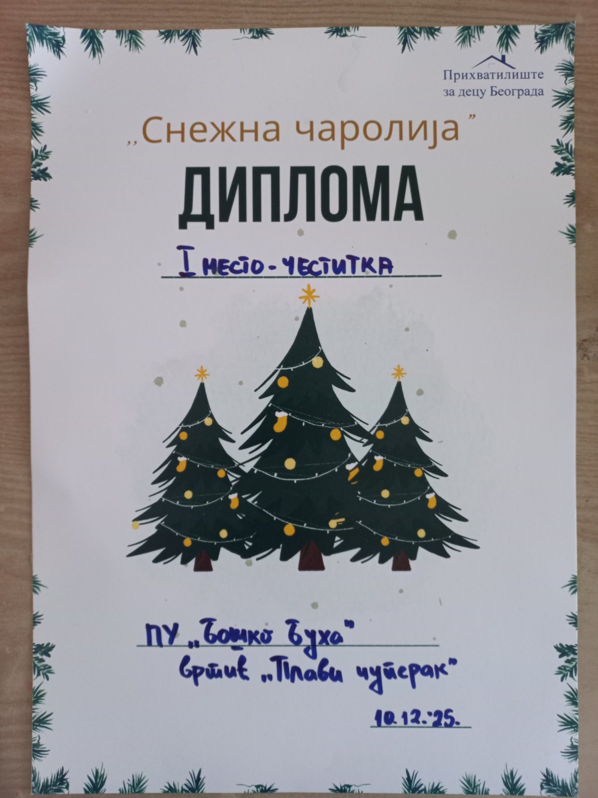 "Свратиште за децу" Града Београда је организовало ликовни конкурс на ком је учествовао вртић "Плави чуперак" и освојио је награду и диплому. Деца предшколске групе су имала наступ на свечаности доделе диплома.