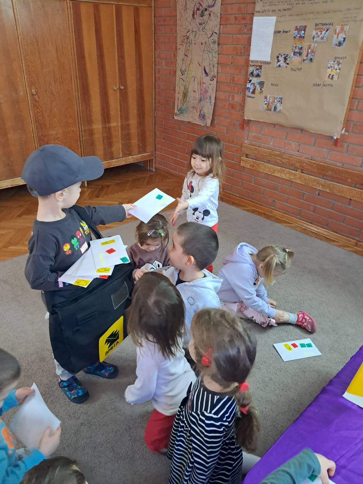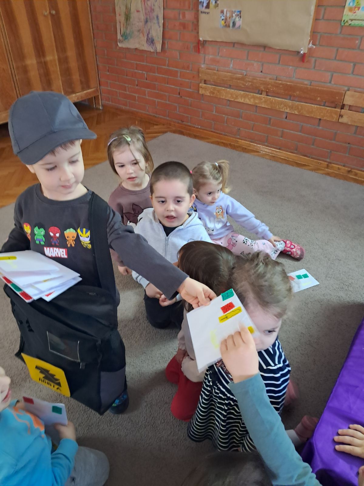 У млађој васпитној групи, у оквиру пројекта „Шта ћу бити кад порастем?“, деца су се кроз игру упознала са занимањем поштара.