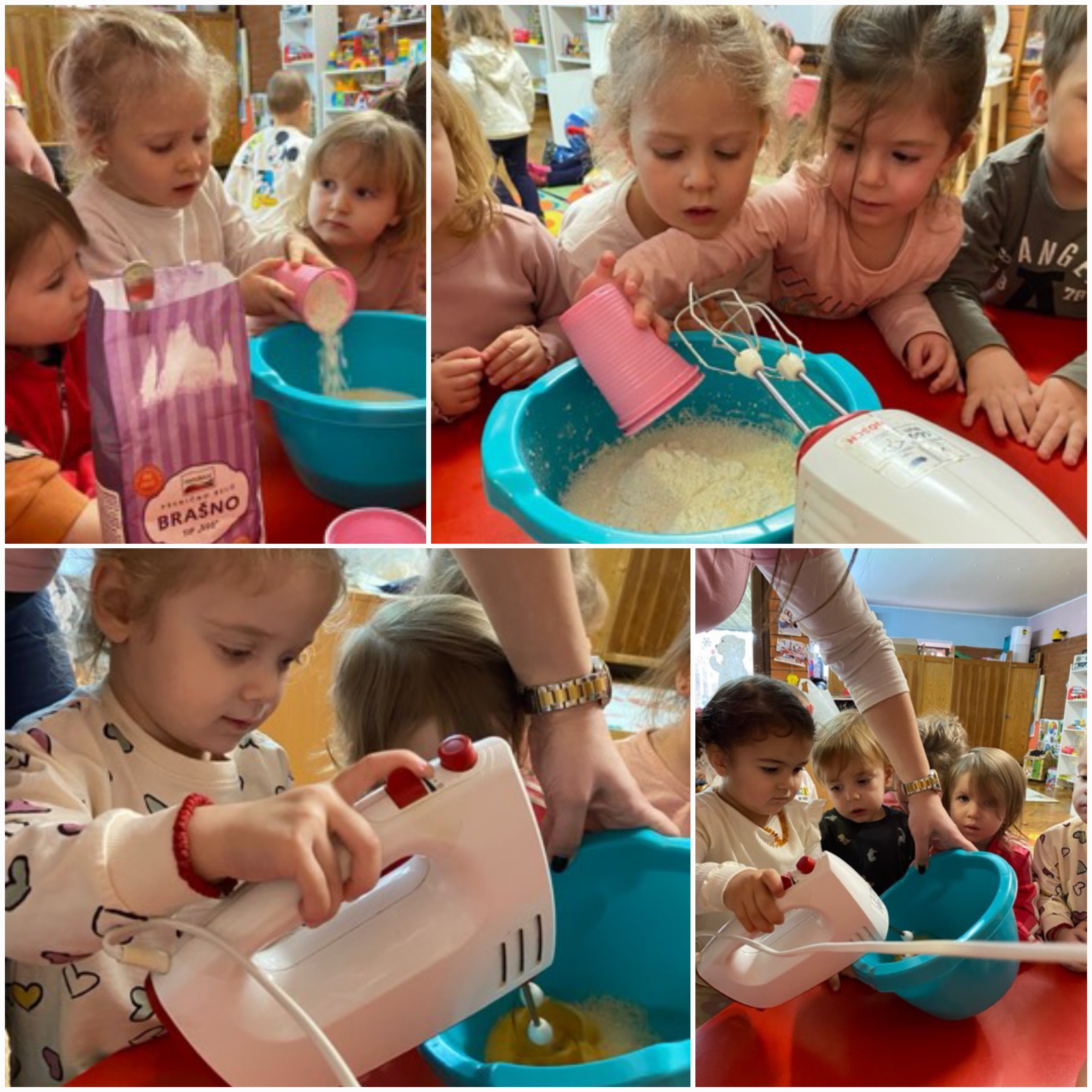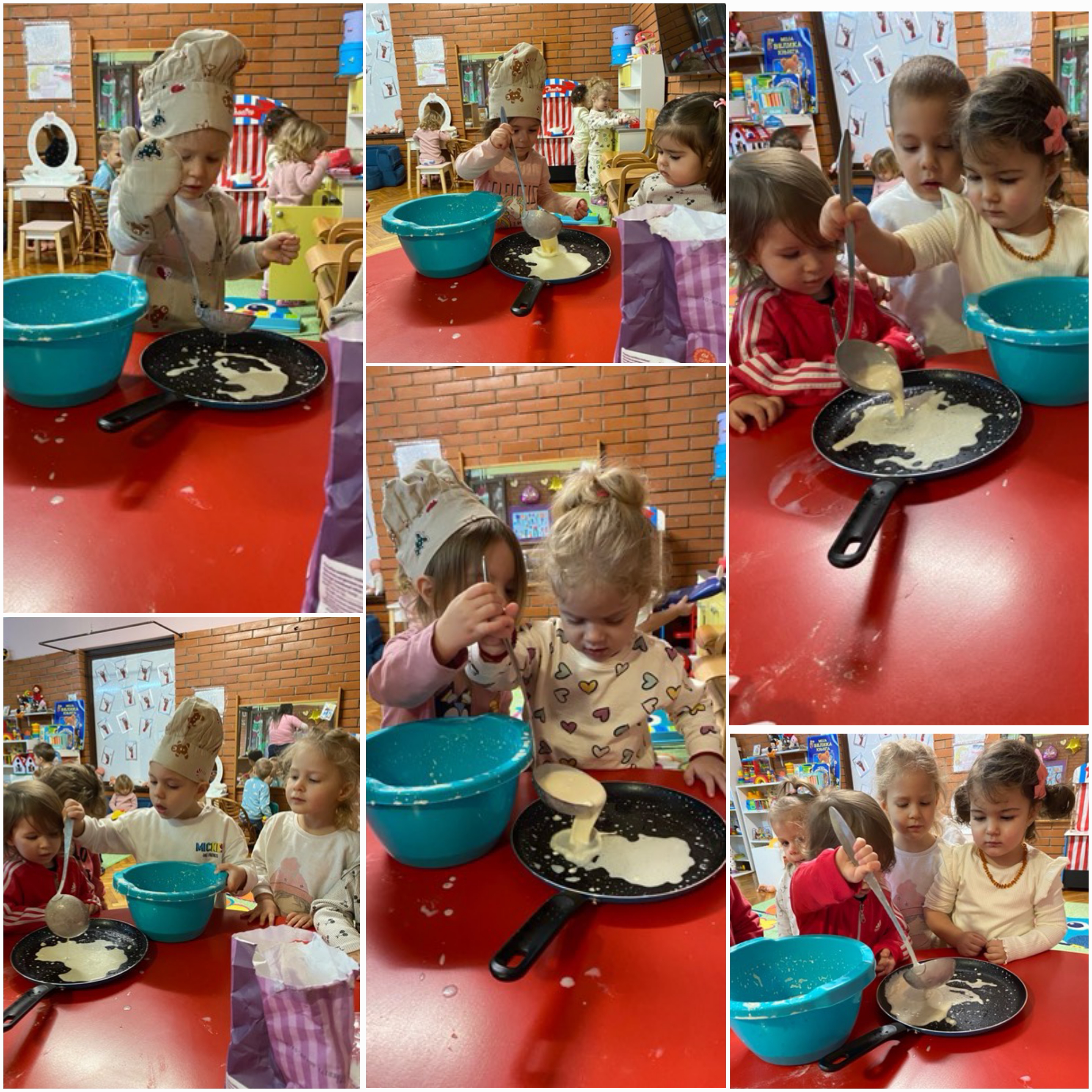 Полазећи од дечјег интересовања, деца су се опробала у припреми палачинки, а затим и у мешењу и обликовању теста за хлеб, преузимајући улогу правих малих пекара. Кроз мешење, додавање састојака и посматрање како тесто нараста, деца су стицала нова искуства, развијала фину моторику, стрпљење и сарадњу.