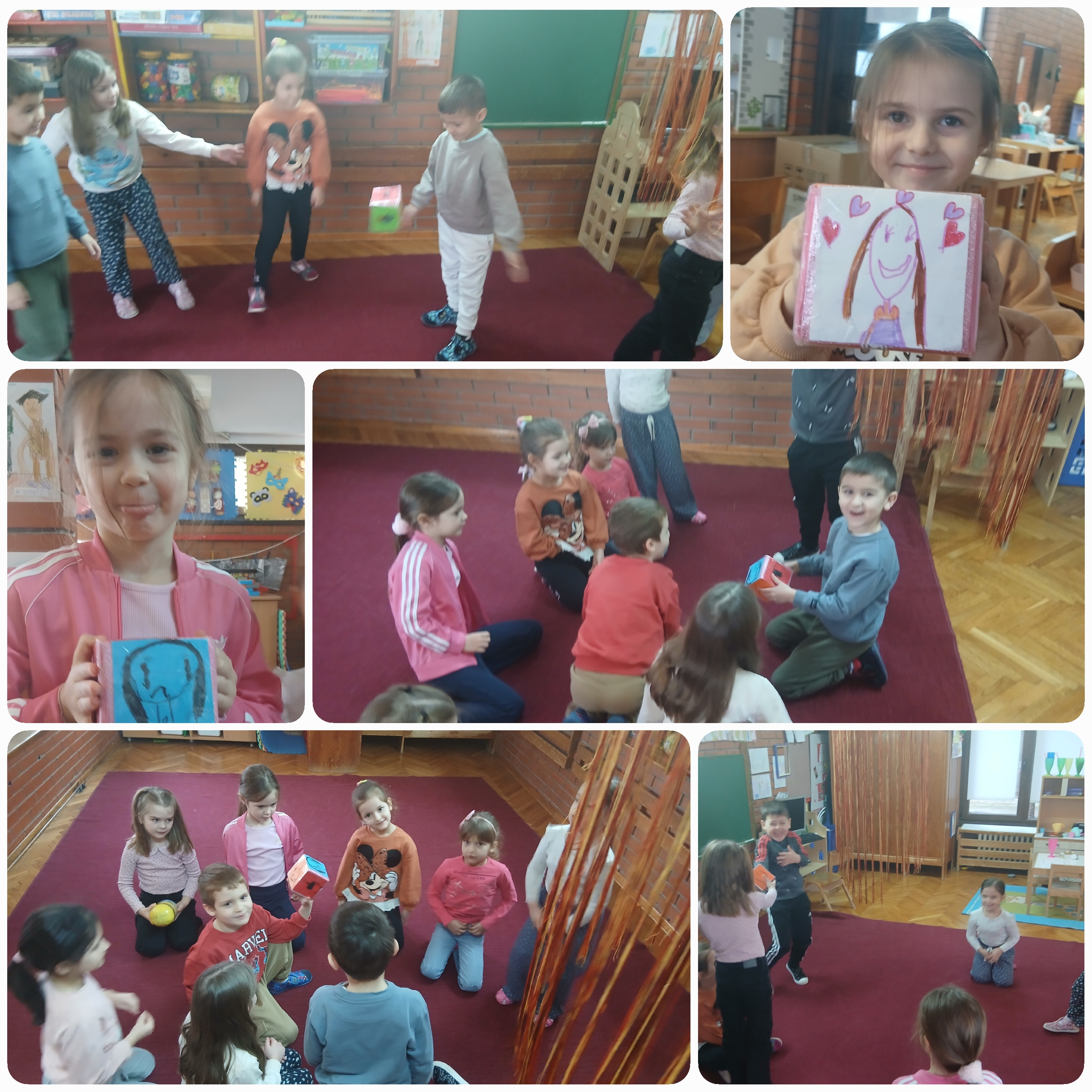 Током игре спонтано је настао „круг осећања“ простор поверења у ком деца имају прилику да искажу како се осећају, да своја осећања покажу покретом или мимиком, као и да их поделе са другом. Кроз разговор и међусобно слушање учимо да препознамо туђе емоције и да их уважавамо. Посебну радост деци доносе пантомимичке игре у којима глумимо различите ситуације и покретом представљамо одређено осећање, док остали покушавају да га препознају. Направили смо и „коцку осећања“, коју користимо у игри представљања и именовања емоција. На предлог деце настала су писма „пуна љубави“, која су са поклонили члановима своје породице. Деца су охрабрена да изразе и деле своја осећања, градећи односе испуњене разумевањем и блискошћу.