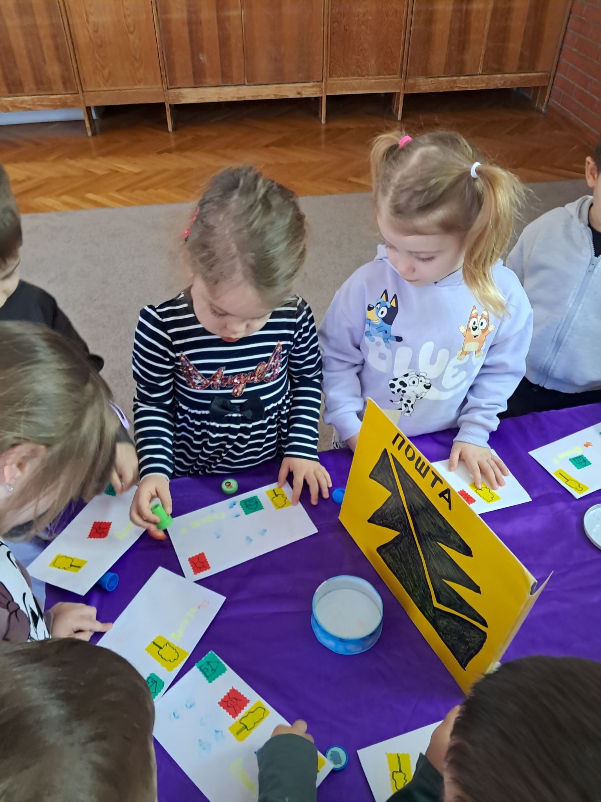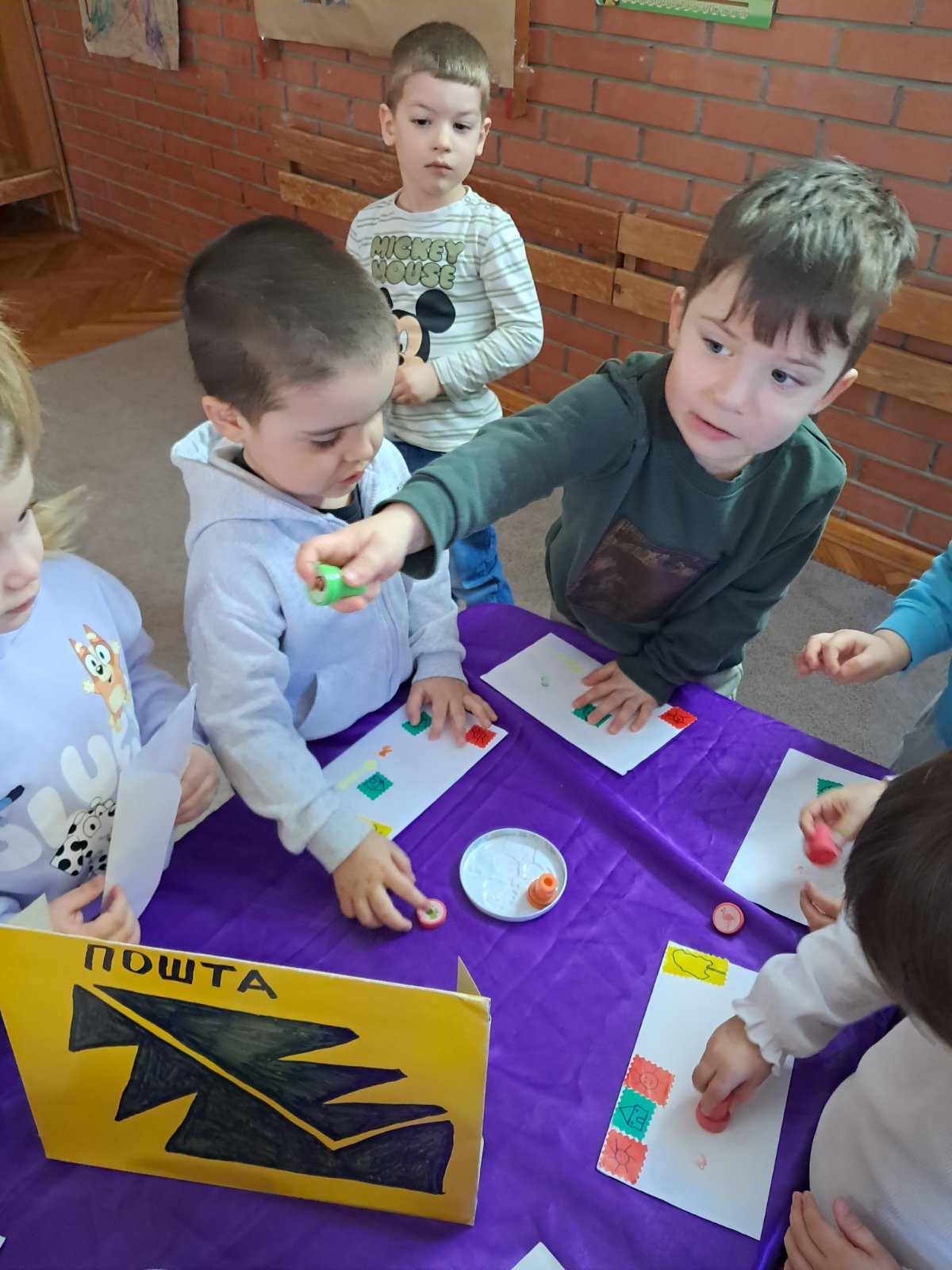 Већ сутрадан деца су преузела улогу службеника поште: печатирали су писма, пажљиво их разврставали и припремали за поштара који ће их испоручити. Радост је била још већа када је једног дана на врата групе позвонио поштар и донео писма.