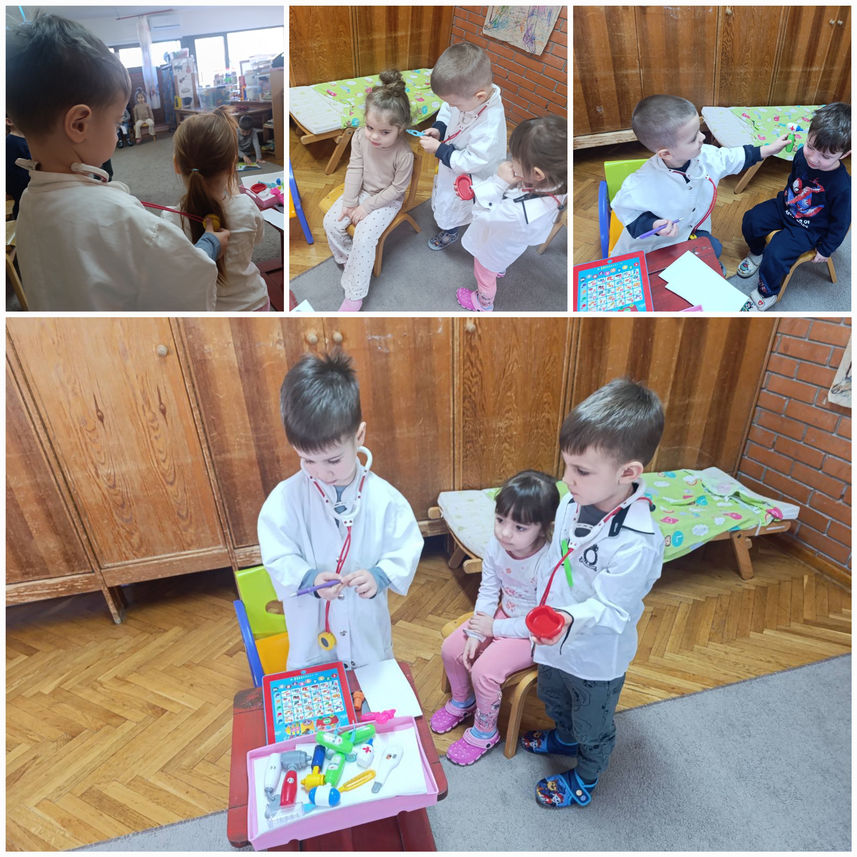 Током посете деца су имала прилику да се упознају са њеним позивом, значајем бриге о здрављу и прибором који користи у свом раду. Са великом пажњом су посматрали инструменте, мерили су тежину, постављали питања и разговарали о томе како се чува и унапређује здравље. Након посете, у радној соби је настављена симболичка игра у којој су деца преузимала улоге лекара и пацијената. Стрпљиво су чекали свој ред у чекаоници импровизованог Дома здравља, смењивали улоге. Кроз игру су прегледали, давали савете и бринули једни о другима, продубљујући своја сазнања и развијајући емпатију и сарадњу.